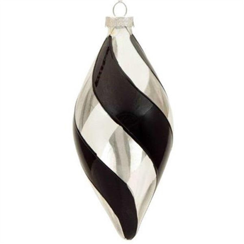 Dísz csepp alakú üveg 12cm csíkos fekete-átlátszó S/4db