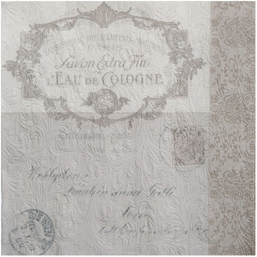 Papír Szalvéta 3 régetű - Fiorentina Lettre szürkésbarna 33x33cm szürke S/20db