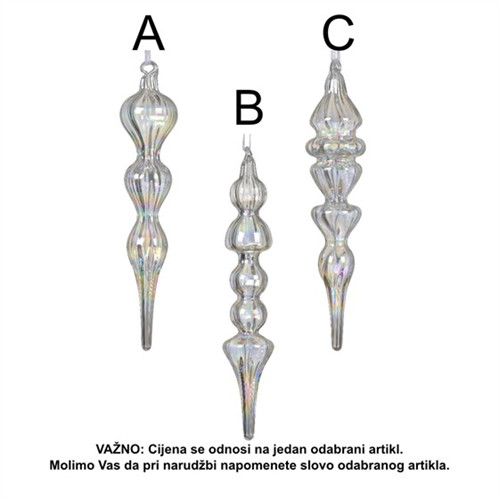 Karácsonyfadísz üveg 18cm - Irizáló 3féle
