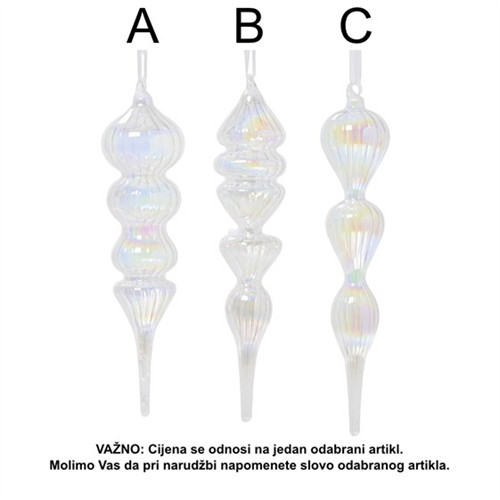 Karácsonyfadísz üveg 26cm - Irizáló 3féle