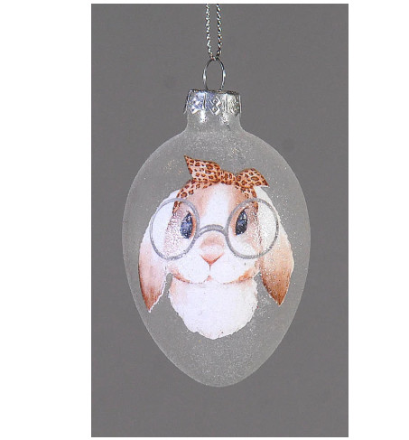 Üveg tojás akasztós szemüveges nyúl 7cm - Lány