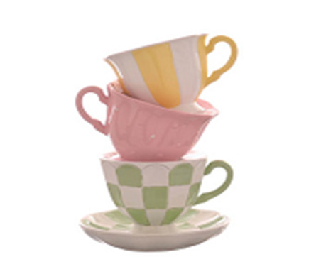 Teáscsészék egymásban 16,3cm - Sárga, rózsaszín, zöld