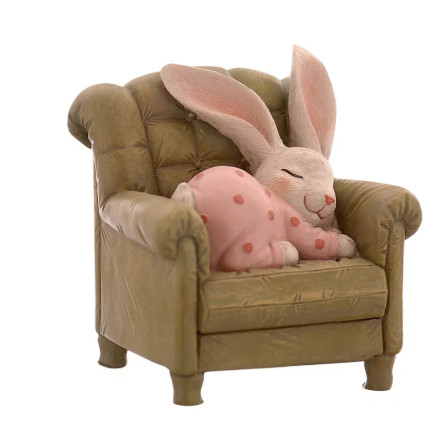 Nyúl pizsamában fotelben alvó 13cm poly