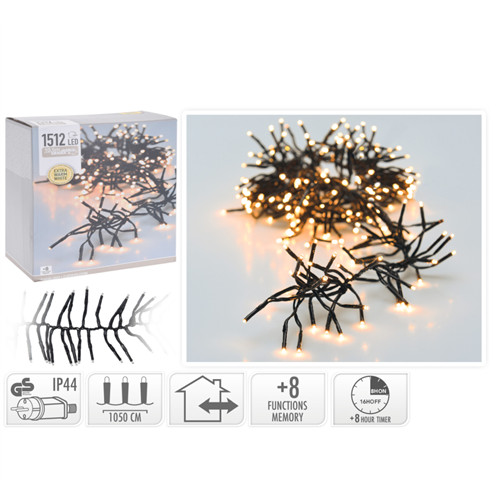 Fényfüzér cluster 1512LED-es 11m+3m (fekete vezetékes) - Melegfehér extra (kül-és beltér)