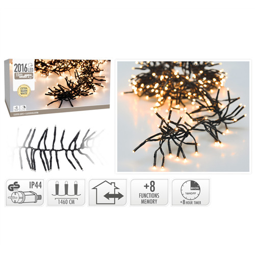 Fényfüzér cluster 2016LED-es 14,6m+3m (fekete vezetékes) - Melegfehér (kül-és beltér)