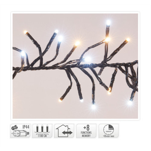 Fényfüzér cluster 1512LED-es 11m+3m (fekete vezeték) - Fehér/Melegfehér (kül-és beltér)