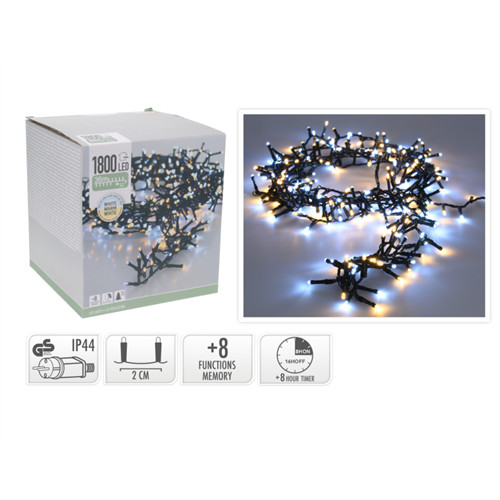 Fényfüzér cluster 1800LED-es 36m+3m (fekete vezetékes) - Sziporka (kül-és beltér)