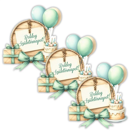 Nyomtatott dekorkarton 6x6cm - Lufis torta szülinap (3db/csom.)