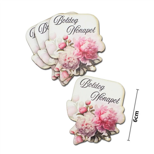 Nyomtatott dekorkarton - Boldog nőnapot virágos tábla 6cm - Rózsaszín (4db/csom.)