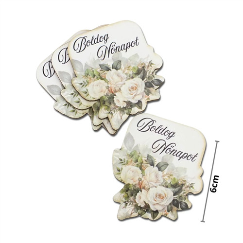 Nyomtatott dekorkarton - Boldog nőnapot virágos tábla 6cm - Fehér (4db/csom.)