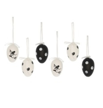 Tojás pöttyös akasztós műanyag 6cm - Fekete,fehér S/6