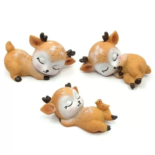 Szarvas alvó, poly, 6,7x3,7x4cm - Barna 3 féle