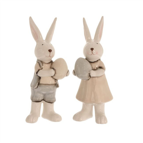 Nyúl fiú, lány tojással álló kerámia 6,5x5,5x15,6cm - Krém, szürke, 2 féle
