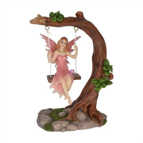 Tündér hintával, faágon poly 10,5x5,8x13cm - Színes