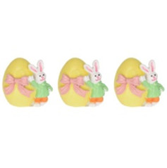 Nyúl tojással, masnival poly 3,5x2,7x3,4cm - Sárga, zöld S/3