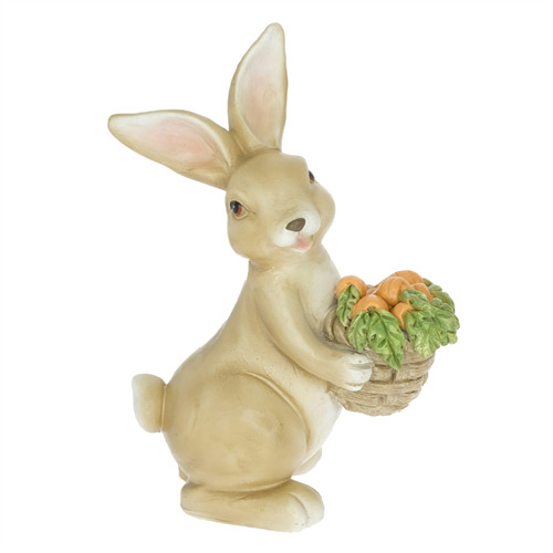Nyúl répával, virággal álló poly 14,5x8,5x20,5cm - Barna 2 féle