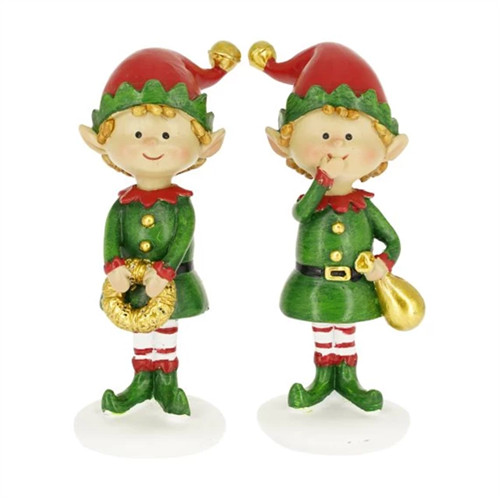 Manó fiú, lány koszorúval, csomaggal álló 4x4x10cm - 2 féle
