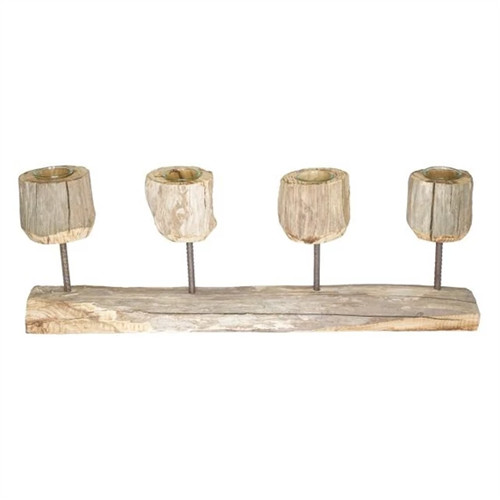 Gyertyatartó 4 részes uszadékfa, üveg 57x20cm - Natúr