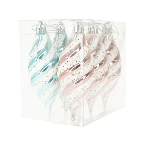 Karácsonyfadísz csavart, glitteres 12,3x8,2x11cm - S/6