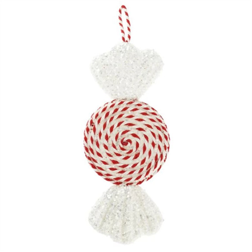 Cukorka spirál mintás, óriás, akasztós, flitteres 32x12x6cm - Piros/fehér