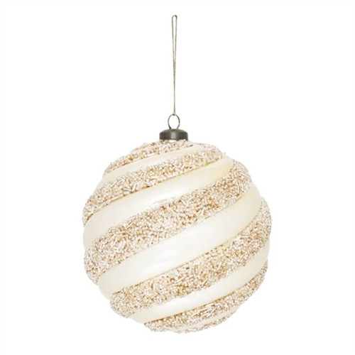 Karácsonyfadísz akasztós gömb 15cm gyöngyház fényű glitteres műanyag - Pezsgő