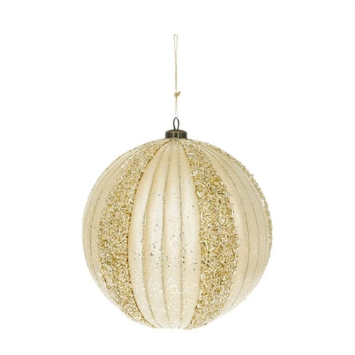 Karácsonyfadísz akasztós gömb 20cm műanyag gyöngy csíkokkal - Rózsaszín