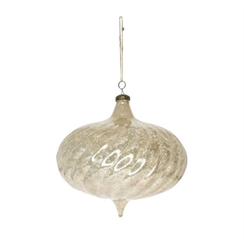 Karácsonyfadísz akasztós gömb hagyma alakú 20x19,5cm műanyag - Ezüst