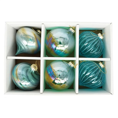 Üveg gömb 8cm hagyma alakú - Türkizkék S/6
