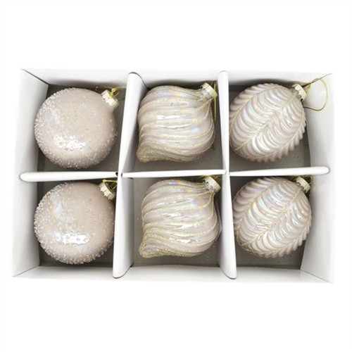Üveg gömb 8cm hagyma alakú dombor mintával - Pezsgő irizáló S/6