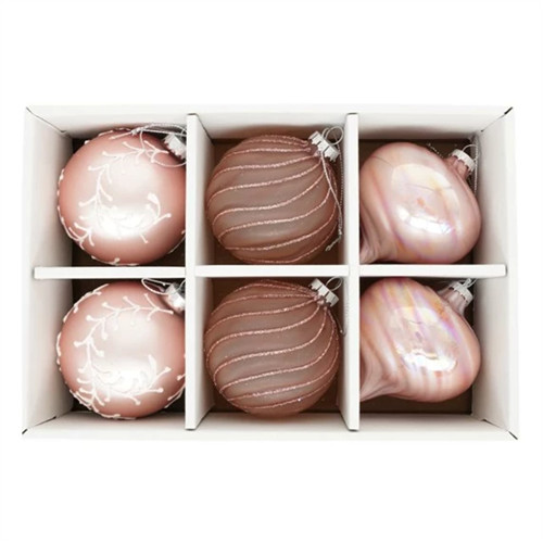 Üveg gömb 8cm hagyma alakú matt - Rózsaszín, mályva S/6