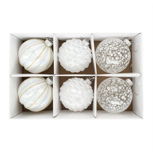 Üveg gömb 8cm toboz alakú, pöttyös dombor mintával - Gyöngyház S/6
