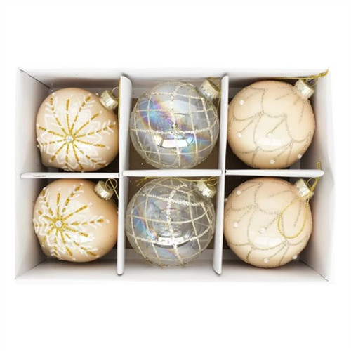 Üveg gömb 8cm glitteres - Átlátszó, bronz, krém S/6