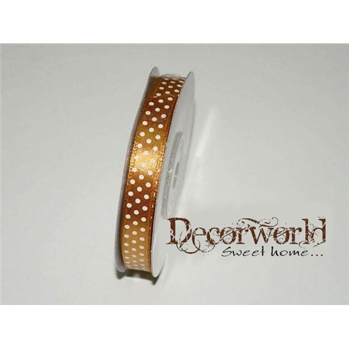 Szatén szalag pöttyös világos barna 10mm x 12yard