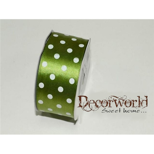 Szatén szalag pöttyös zöld 38mm x 12yard