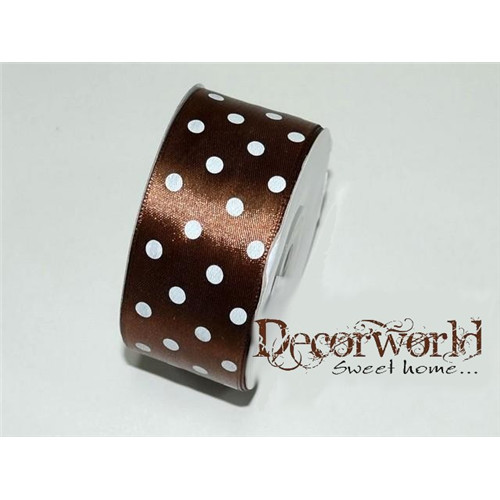 Szatén szalag pöttyös sötétbarna 38mm x 12yard