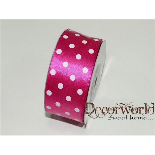 Szatén szalag pöttyös ciklámen 38mm x 12yard
