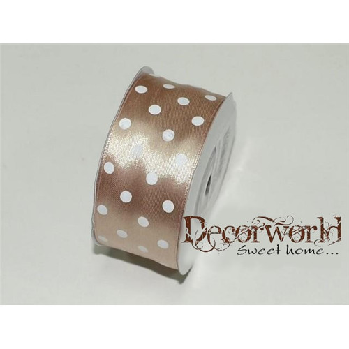 Szatén szalag pöttyös taupe 38mm x 12yard