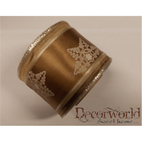 Textil szalag barna hópelyhes ezüst széllel 6cm x 10m