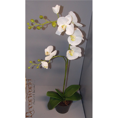 Phalaenopsis Orchidea ültetett műa. cserépben 1 szálas 2ágas gumi fehér 65-70cm