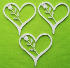 Fehér fa Rózsa szívben3db/ csomag 10x10cm