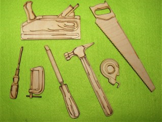 Natúr Asztalos szett 1szet Gyalu 9,5x6 fűrész 16,5x3,5kalapács12x5 csavarhúzó 8,5x1,2 centi 4x3 cm vastagság 3 mm