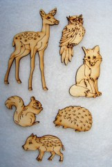 Natúr fa Erdei állatok 1 szett ,őzike 10x5,5-bagoly 6x3-róka3,8x6,2-mókus 4,5x3,7-süni 4,5x3 cm