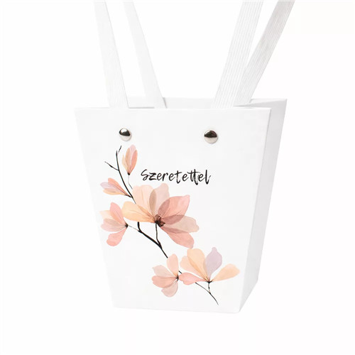 Virágtáska trapéz "Szeretettel" feliratos 12x8x12,5cm - Fehér (10db/csom.)