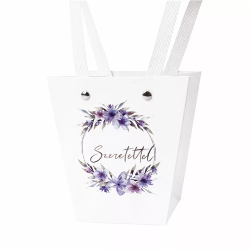 Virágtáska trapéz "Szeretettel!" feliratos 12x8x12,5cm - Fehér (10db/csom.)