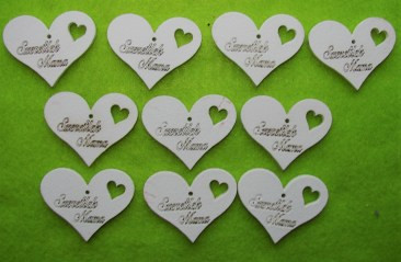 Fehér fa szeretlek mama kis szivel 10db/csomag 5x4cm