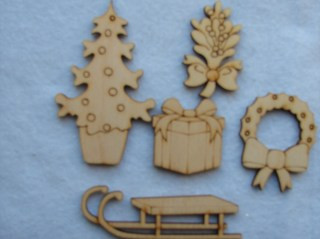 Natúr fa Karácsonyi manó szett 5db/csomag karácsony fa 5,5x9cm, szánkó 9x3cm,fa gyöngy 3,5x5,5 cm,koszorú4,5x5,5 cm,ajándék4x4cm,vastagság 3