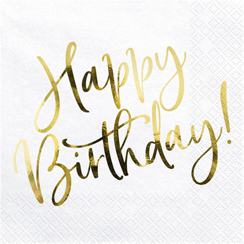 Szalvéta "Happy Birthday" 33x33cm - Fehér/Arany