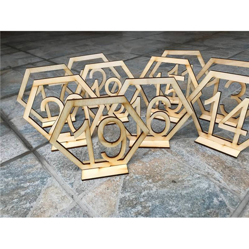 Natúr fa 6 szögletű talpas asztalszám 11-20-ig 14x12 cm /DARAB